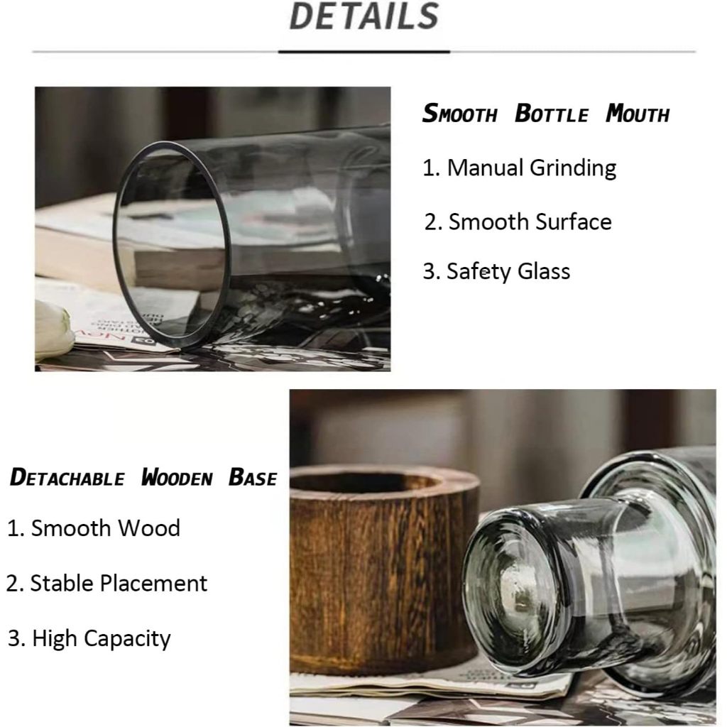 Vase on Wood Base Transparent Stand Glass Cylinder Plant Flower Leaf Hide Root Pasu Bunga Kaca Atas Kayu Sorok Akar