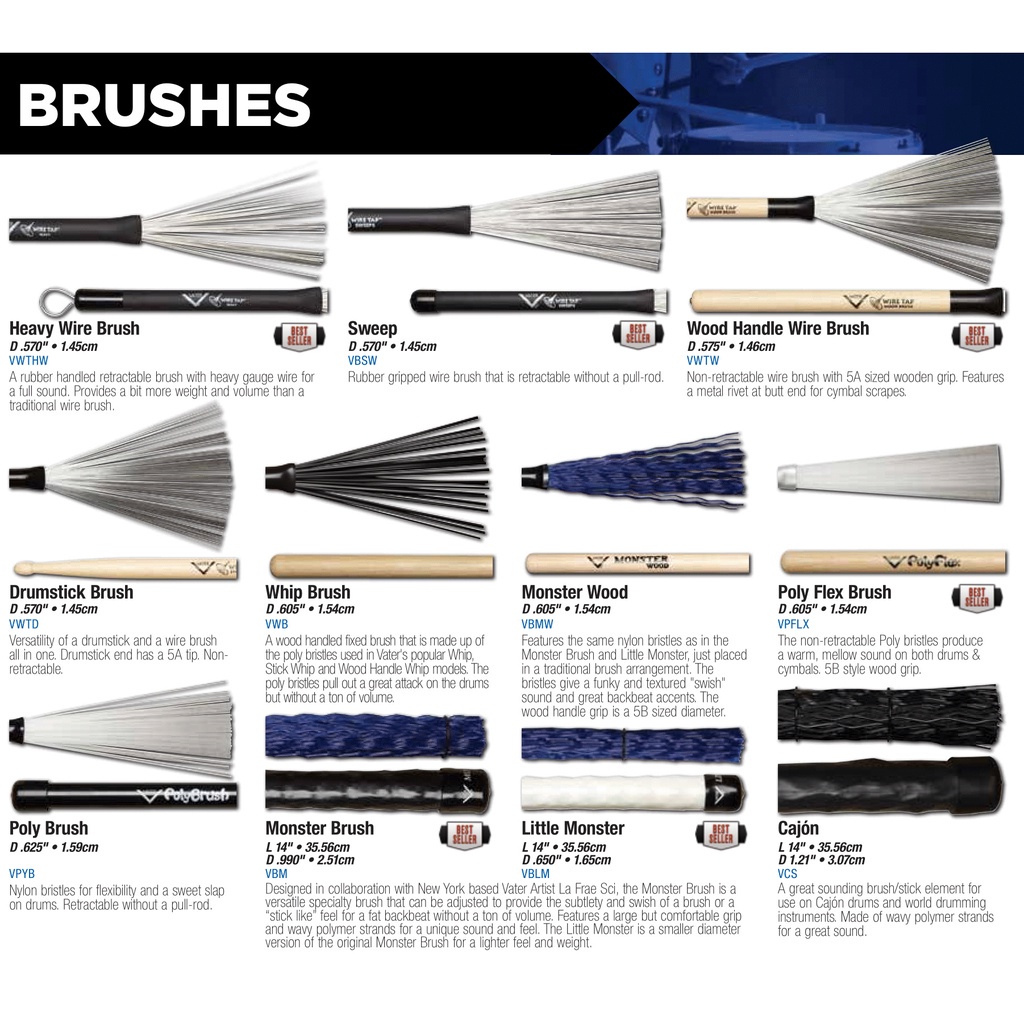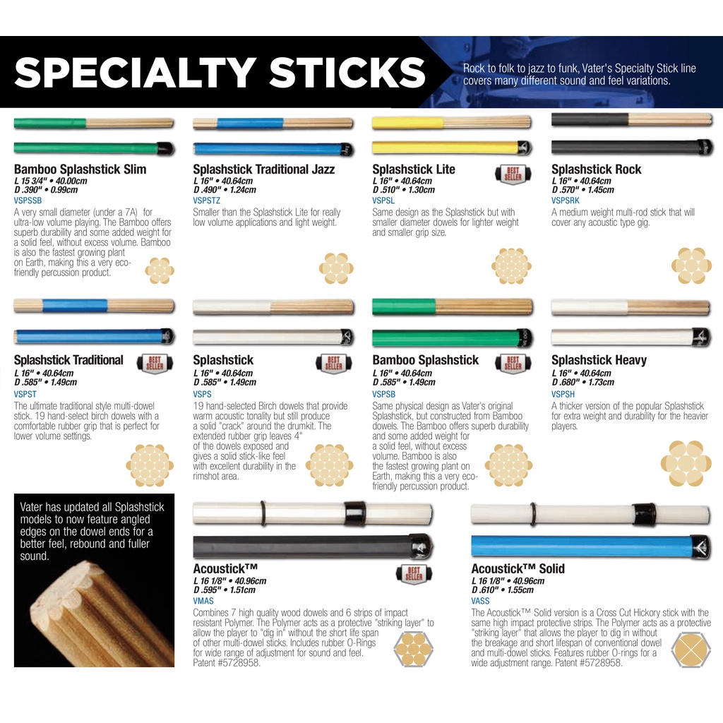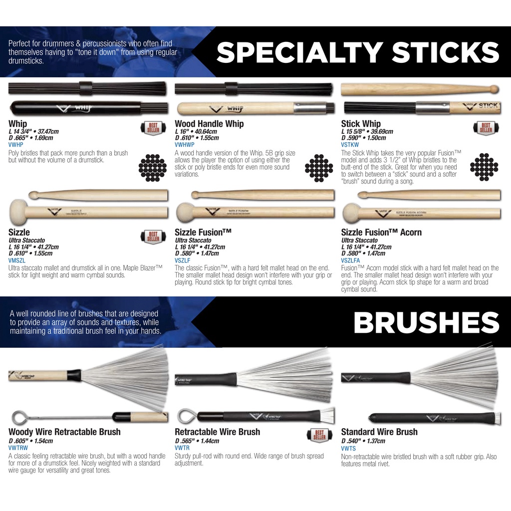 Vater VWHWP Percussion Wood Handle Whip (1 Pair)
