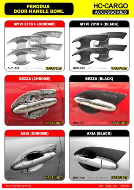 Vemart Perodua axia old 2014-2022 4pcs car door handle bowl cover accessories axia style gear up Not For NEW AXIA‼️