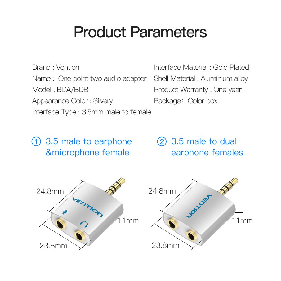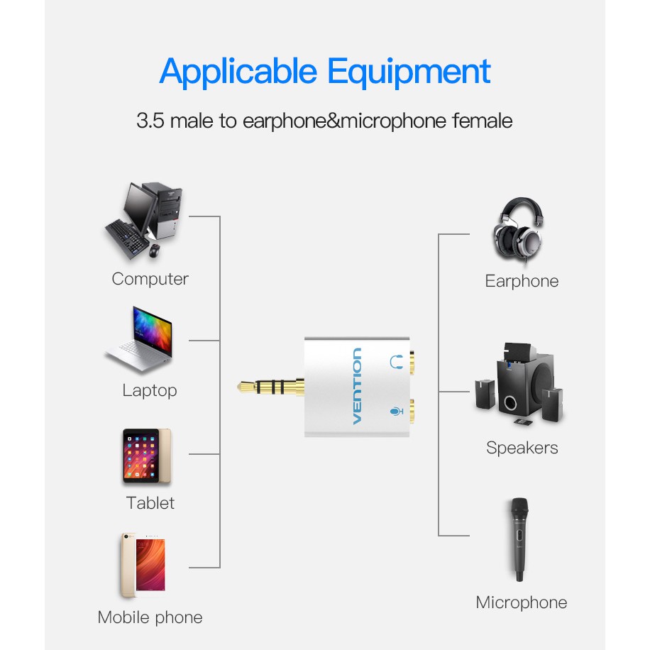 Vention 3.5mm Earphone Audio Splitter Connector with mic Audio Adapter for Headphone PC