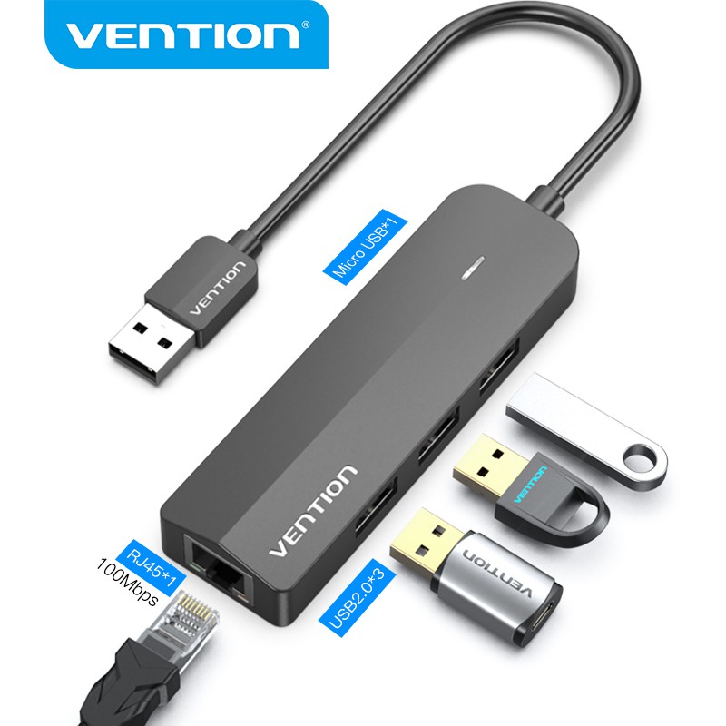 Vention USB C to Ethernet Adapter with 4-Port USB 3.0 Hub, Gigabit LAN Network Converter 1000Mbps High Speed Docking Station for Laptop PC Desktop