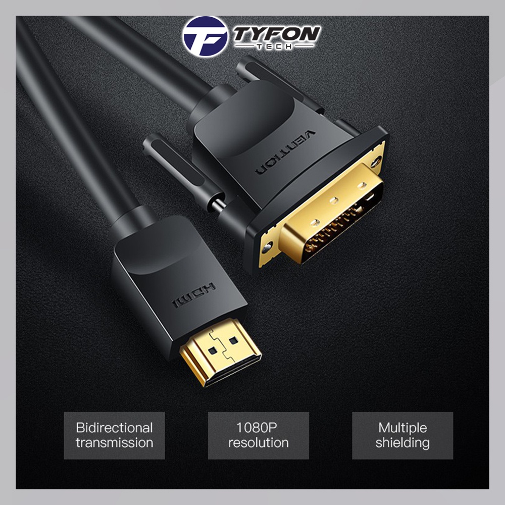 Vention HDMI to DVI Cable BI Directional DVI-D 24+1 Male to Male Adapter High Speed 1080p HD 2M