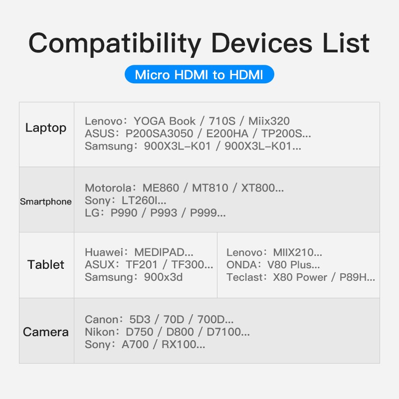 Vention Micro HDMI to HDMI Cable 1080p 60Hz HDMI Cable for Camera Tablet PC Laptop