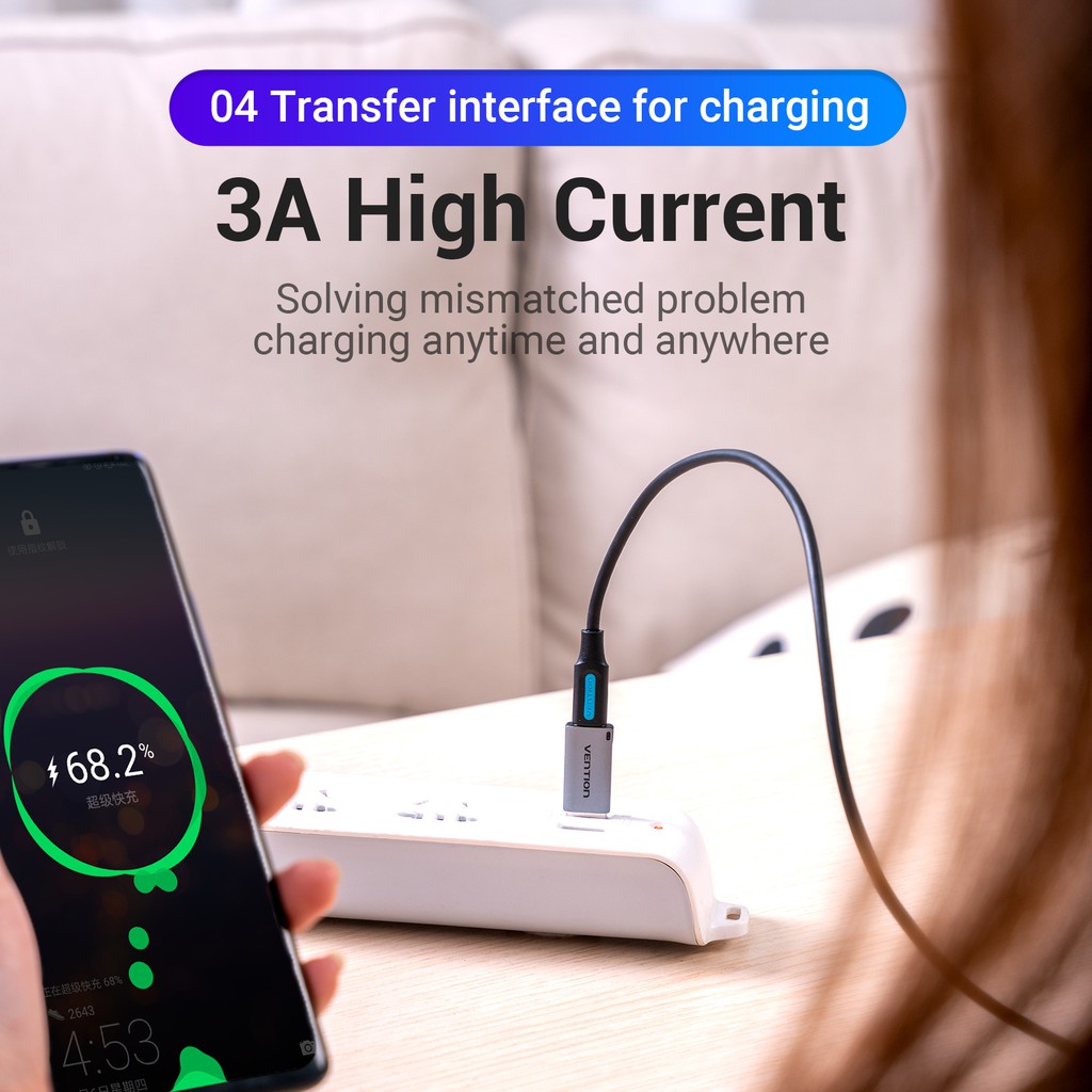 Vention USB 3.0 to Type C Adapter 5V 3A 5Gbps Male to Female Keychain Lanyard Nickel-plated USB Converter for Laptop