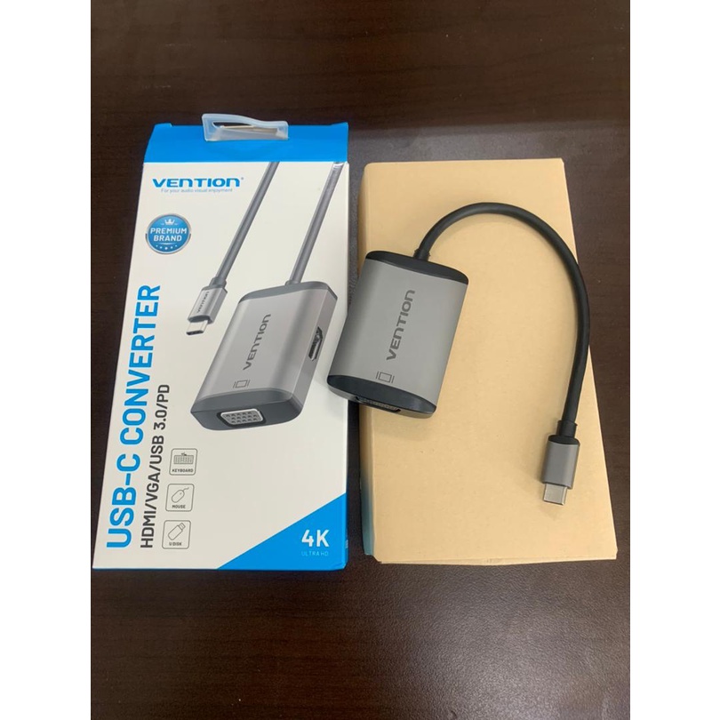 Vention USB-C Converter USB-C to HDMI VGA Adapter USB C Hub with 4K HDMI 1080P VGA USB 3.0 PD Charging Port