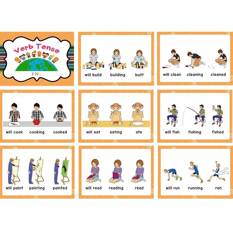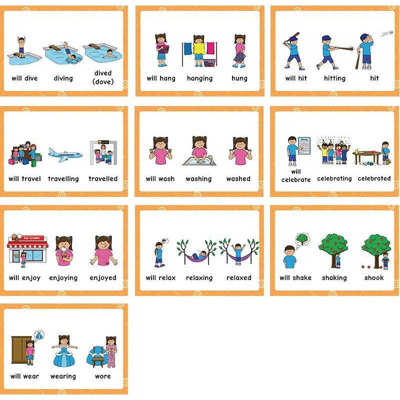 Verb Tense Flash Card English Word Picture Cards Activities Educational Toys Smart Reading Pen