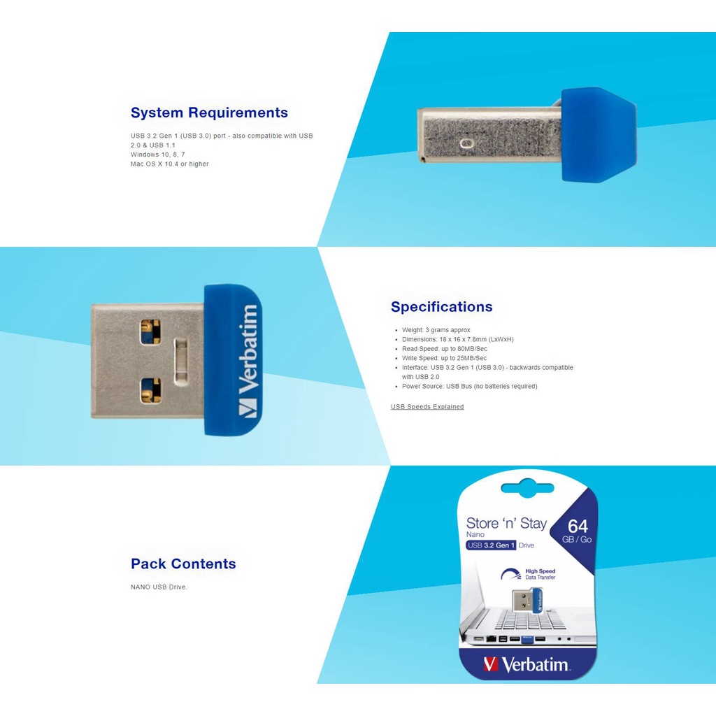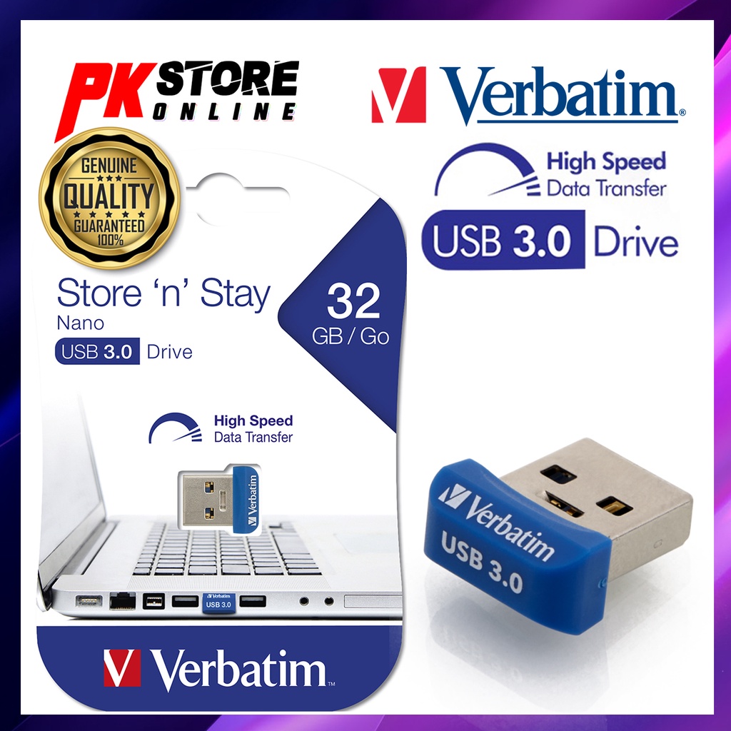 VERBATIM 32GB STORE 'N' STAY NANO USB 3.0 FLASH DRIVE (BLUE)