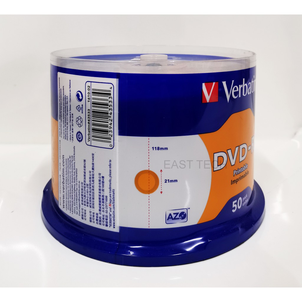 Verbatim 43533 Inkjet Printable DVDR DVD-R 4.7GB 120min (50pcs/Spindle)