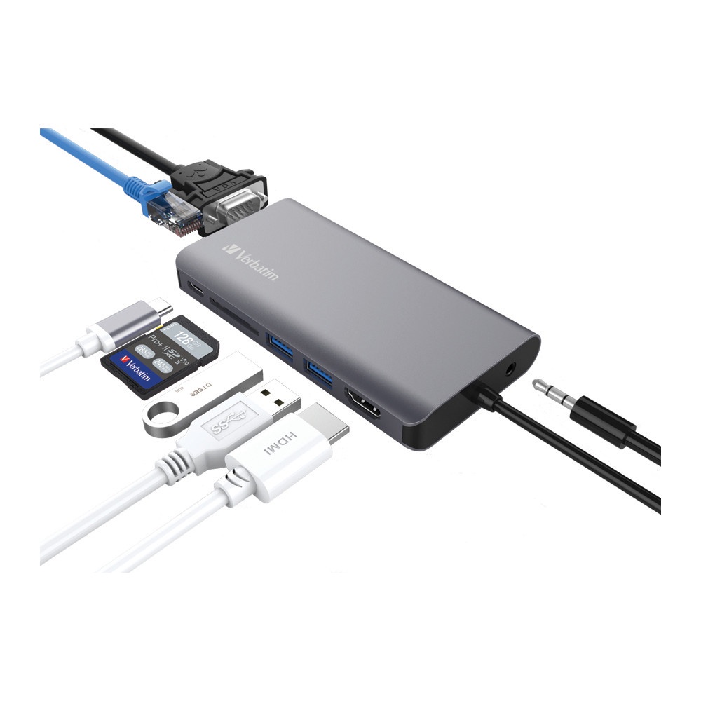 Verbatim 66148 8-in1 Type-C Portable Dock with 100W PD Charging - Grey