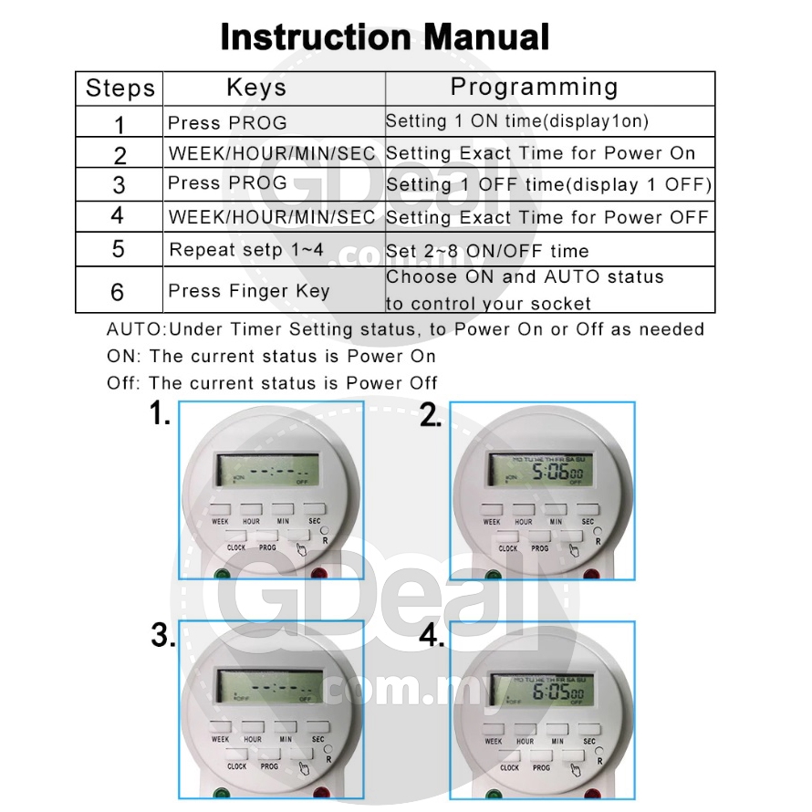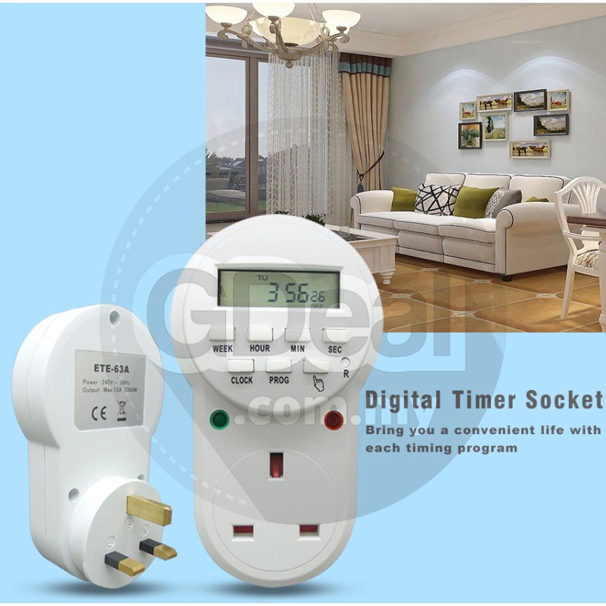 ViRYN Malaysia Plug Electronic Programmable Timer Switch Weekly Digital Timer Home Mini Timer Switch (ETE-63A)