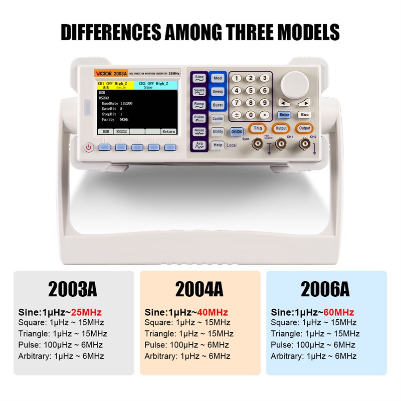 Victor 2003 Function Arbitrary Waveform Function-Generators 200MSa/s 25-60MHz Software Dual Channels USB Device Signal Generator