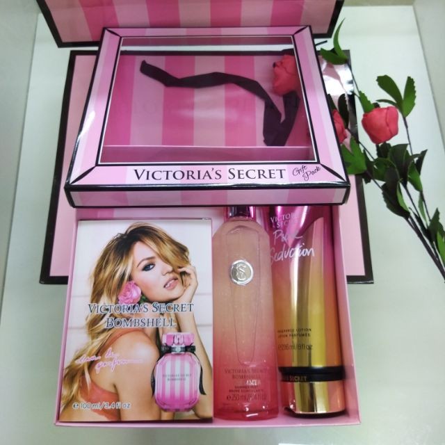Victoria's_Secret Bombshell Perfume Body Lotion & Body Mist Gift Box Set With Free Paper Bag 3 In 1 Eau De Parfumes EDP
