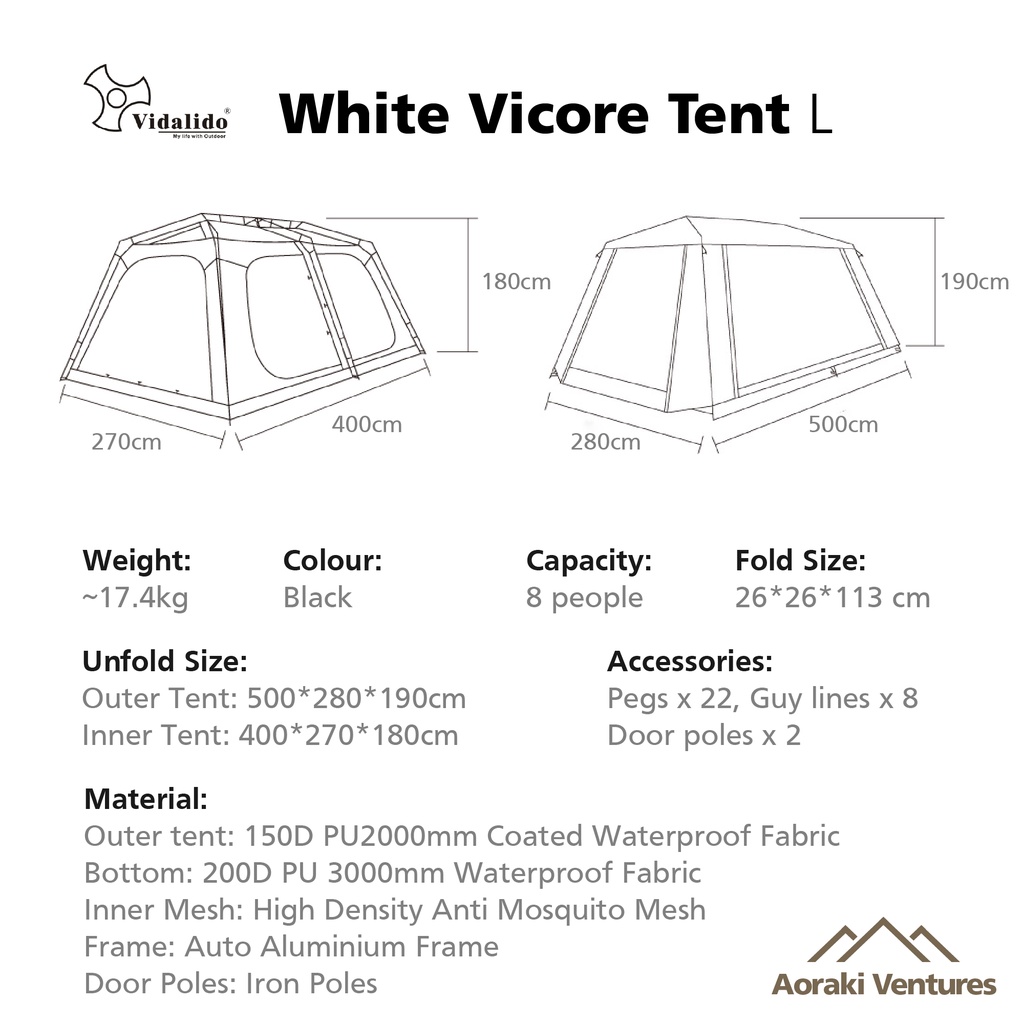 Vidalido Vicore Tent L (Free Groundsheet) - Villa Style Auto Tent Waterproof Coating