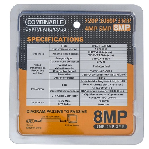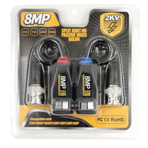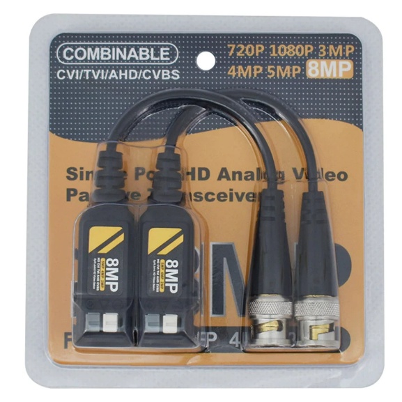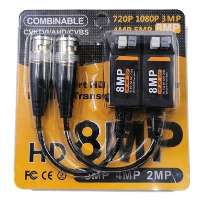 Video Balun 8MP CCTV Passive HDCVI AHD TVI Transceiver Single Channel 1 pair (2pcs)