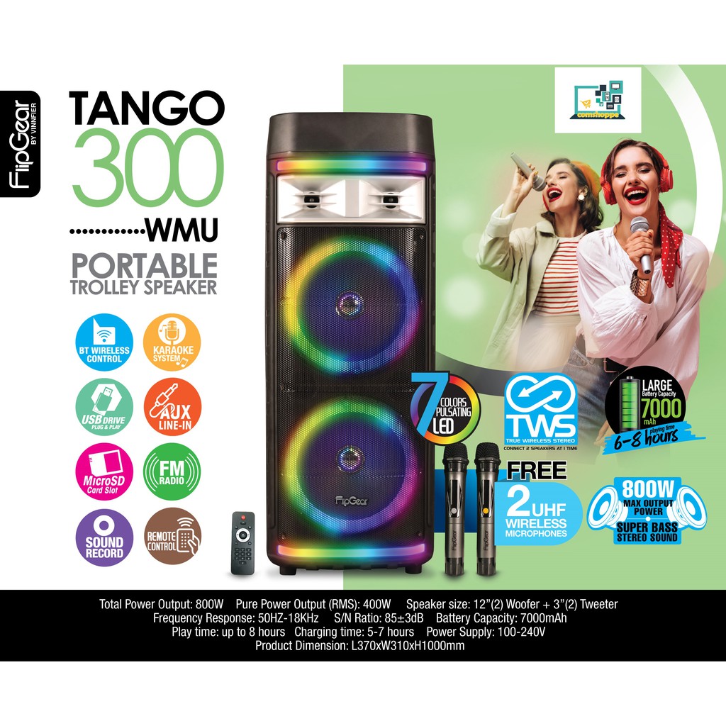 Vinnfier FlipGear Tango 300 WMU 2021 TWS Portable Trolley Speaker With 2 UHF Wirelss Mic Bluetooth Super Bass Karaoke