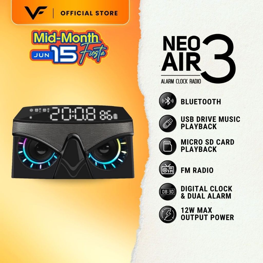 Vinnfier Neo Air 3 Wireless Portable Bluetooth Speaker with Alarm Clock FM Radio SD card and USB Slot