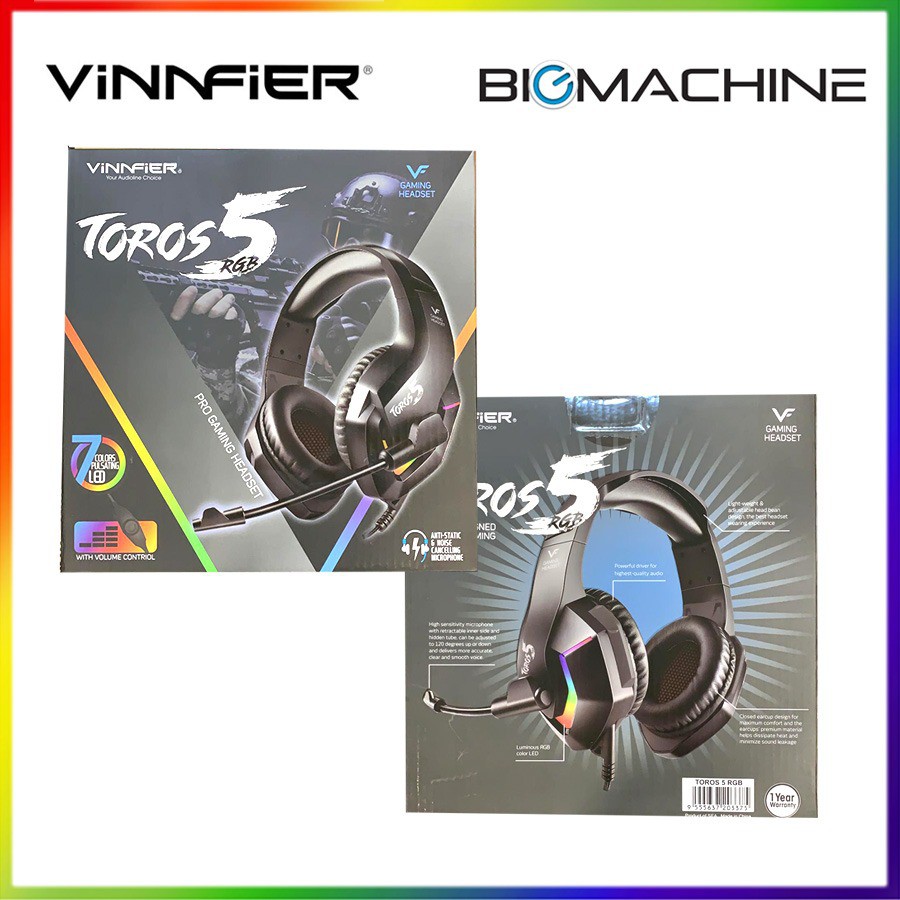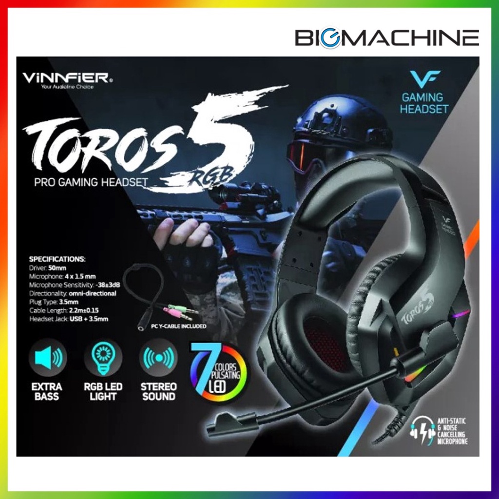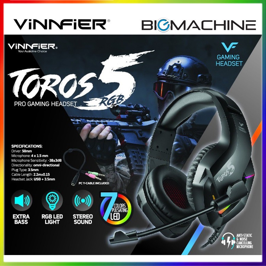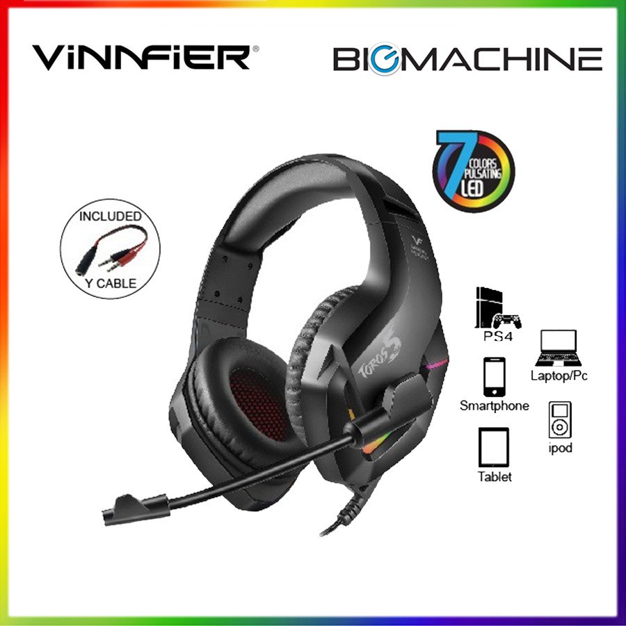 Vinnfier Toros 3 Pro Gaming Headset with Mic | Vinnfier Toros 5 Pro Gaming Headset (Black) --RGB Headset--
