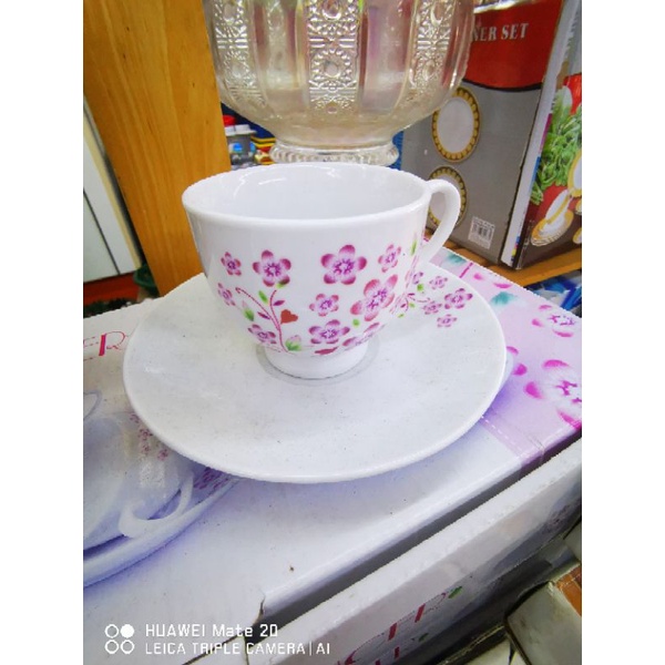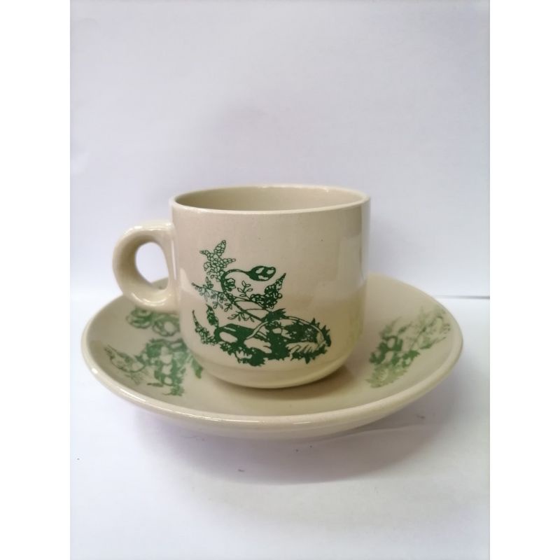 Vintage Kopitiam Cup/Traditional Chinese Floral Green Flower Cup and Saucer/Set Cawan Kopitiam/mug /Gelas /Ceramic/Cawan