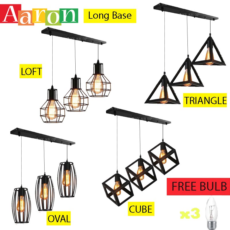 Vintage Pendant Lamp Lampu Gantung Ceiling Light Hanging Light Set Of 3 With FOC Bulb Aaron Shop