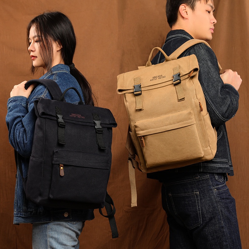 Vintage Pure Cotton Canvas Backpacks Mountaineering Bag Fashion Men Backpack School Bag Neutral Portable Wearproof Travel