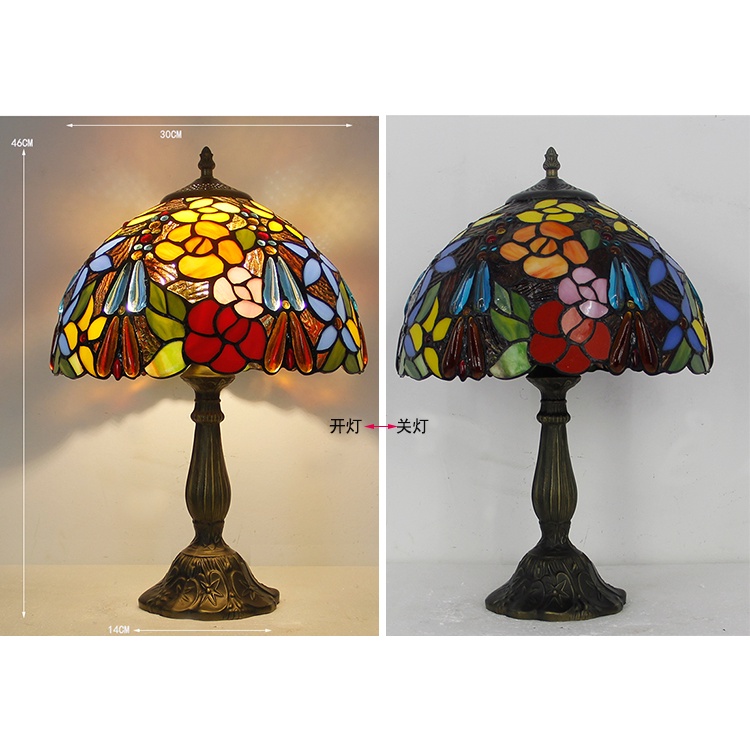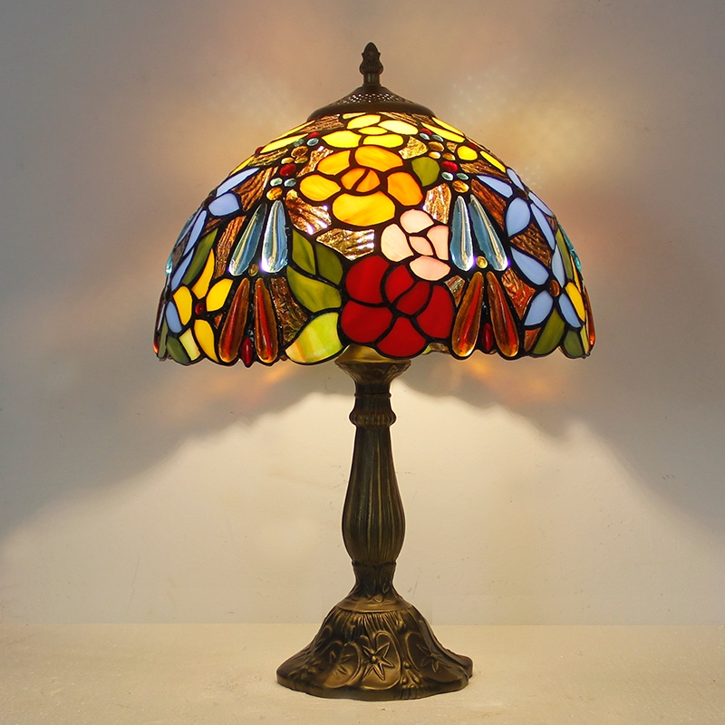 Vintage Retro Stained Glass Table Lamp 110V 220V Rose Flower Design Creative Art Bedroom Light Decoration With Plug In