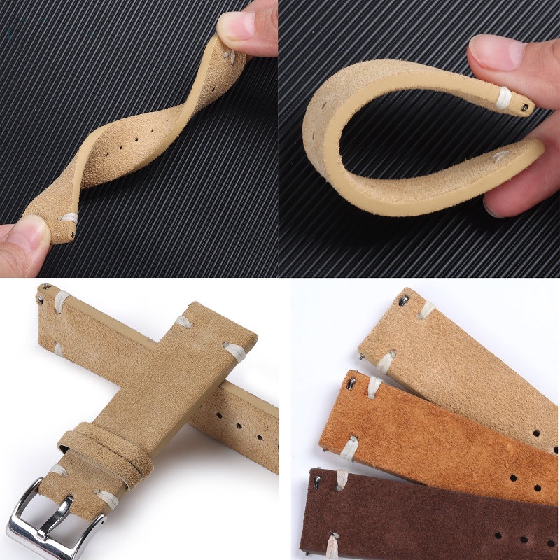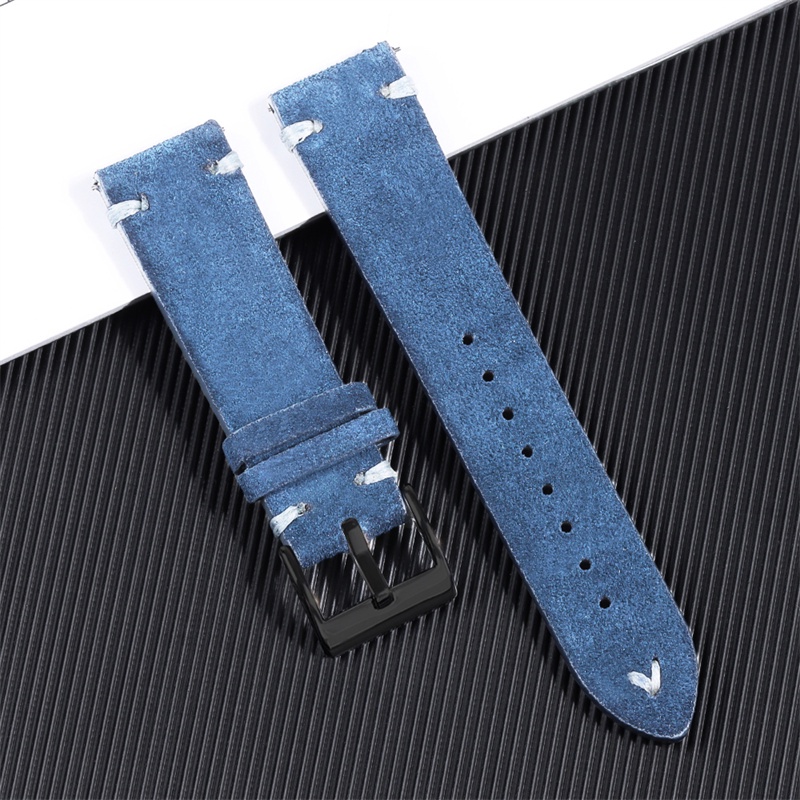Vintage Soft Watch Strap for Seiko Quick Release Wristbelt Retro Suede Stitching Bracelet Genuine Leather Watch Band 18mm 20mm 22mm