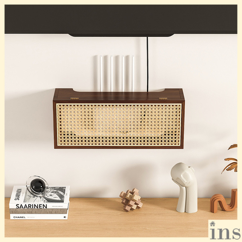 Vintage Solid Wood Rattan Hidden Wireless Router Modem Storage Box Wall-Mounted Rack TV Wire Cable Plug Organizer