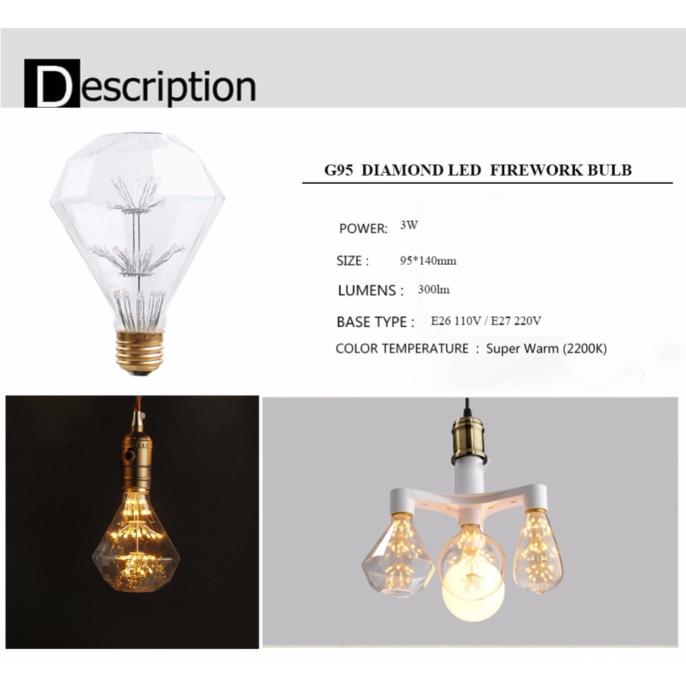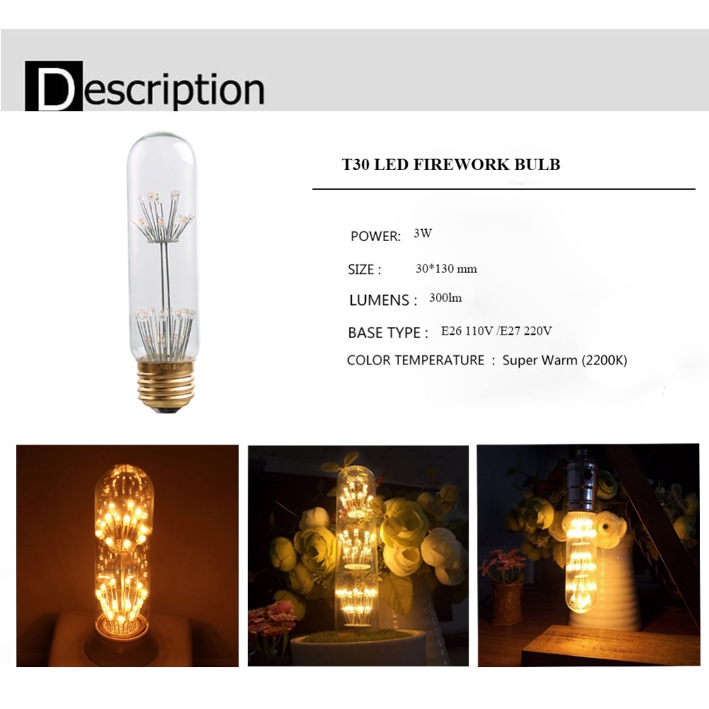 Vintage Stary Sky Led Filament Bulb 3W E27 Light Bulb NON DIMMABLE 2200K Warm White Bulb Decorative Firework Lamp for Holiday Christmas Indoor Party Antique