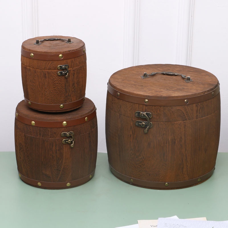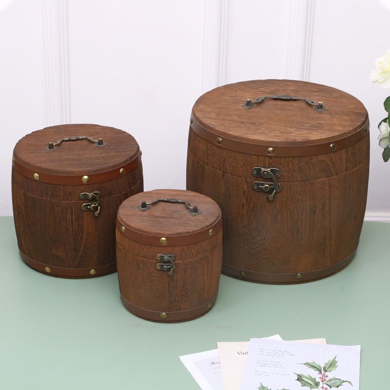 Vintage tea barrel small green citrus tea canister wooden tea packaging gift box portable storage box solid wood canisters