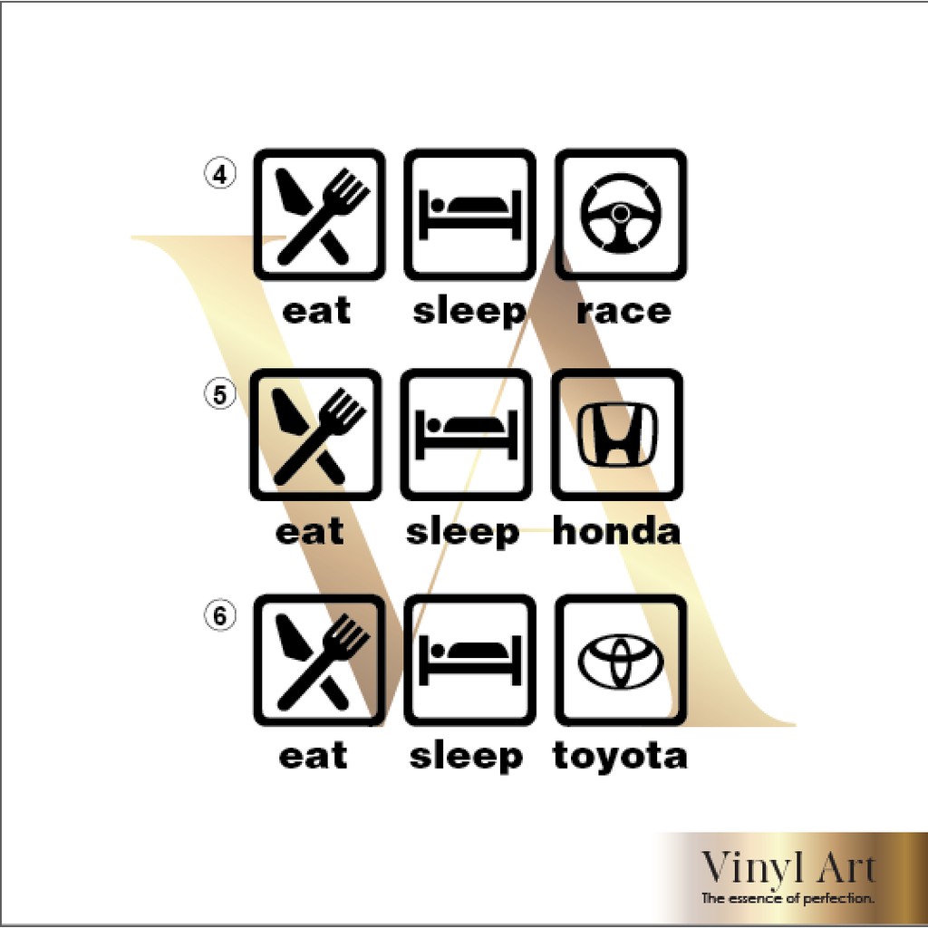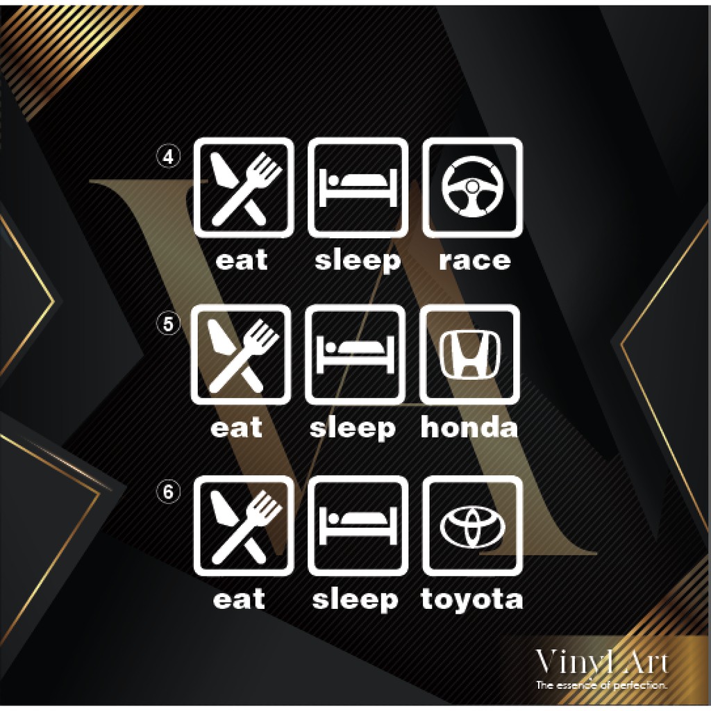Vinyl_Art, Eat Sleep Race, Jdm Stickers, Car stickers, Car decal, Windscreen stickers.