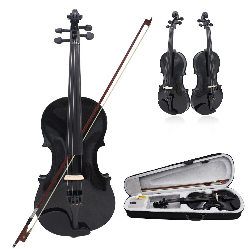 Violin With Case, Rosin & Bow 1/4, 1/2, 3/4, 4/4 (Pink/Red/White/Yellow/Natural/Black/Blue/Green/Purple)