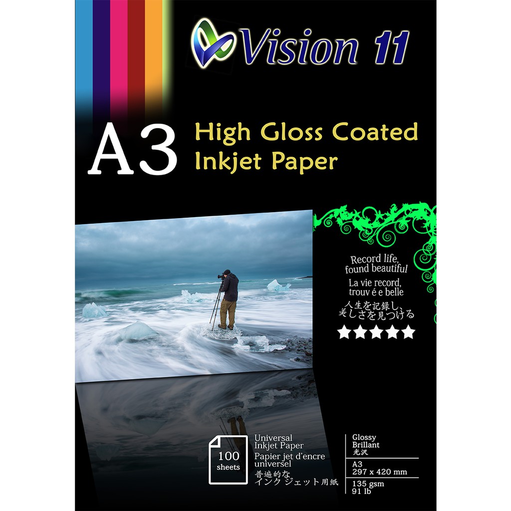 Vision A3 Glossy Inkjet Paper 135gsm (100pcs/pkt) A3 Glossy Photo