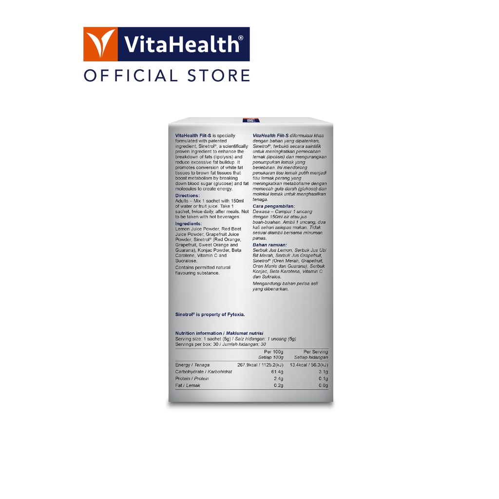 VitaHealth Fiit-S 30's sachets (Fiits Weight-Loss Drink) [Exp: May/2027]