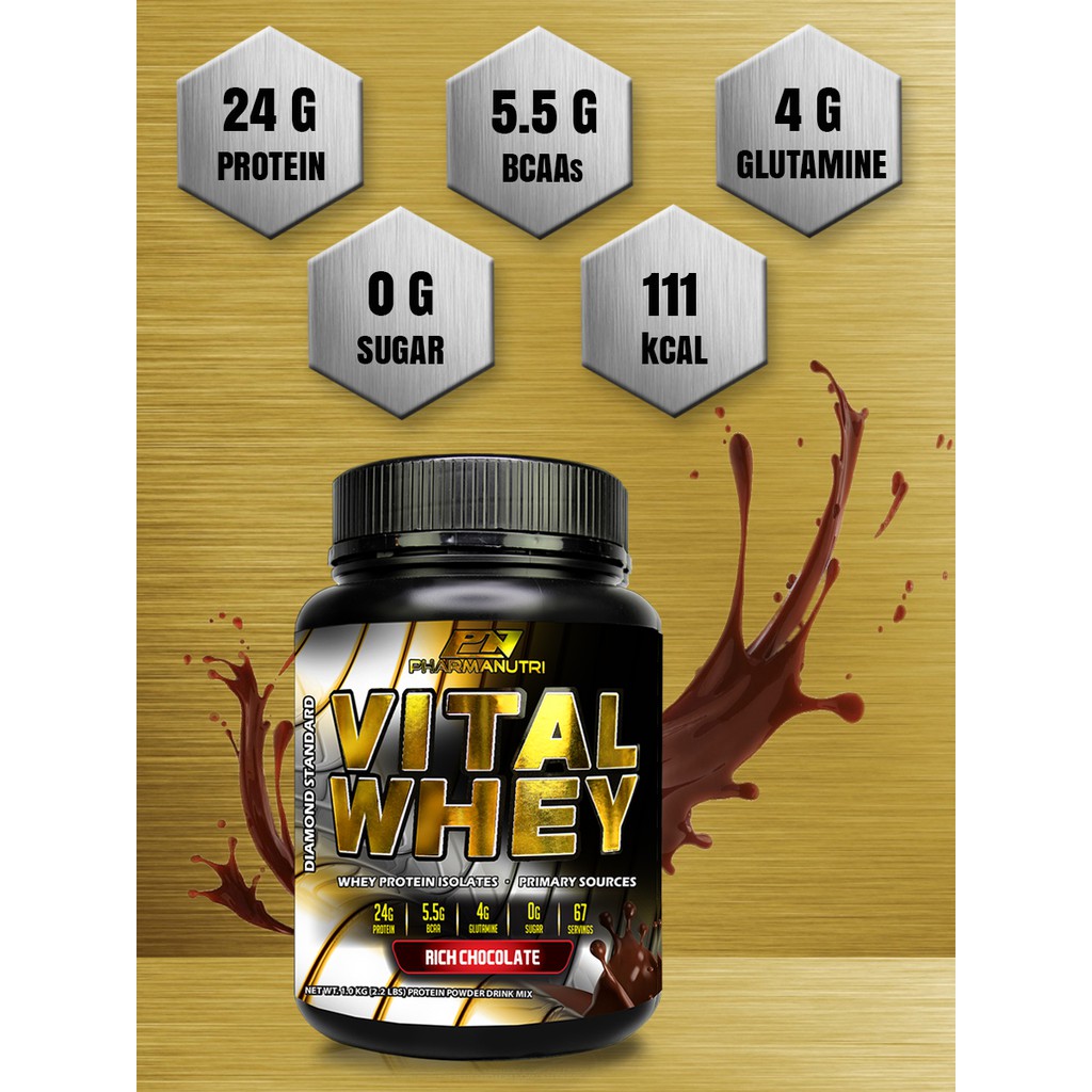 Vital Whey Isolate Halal 1KG 24G Protein 0G Sugar BCAA Glutamine [Free Shaker]