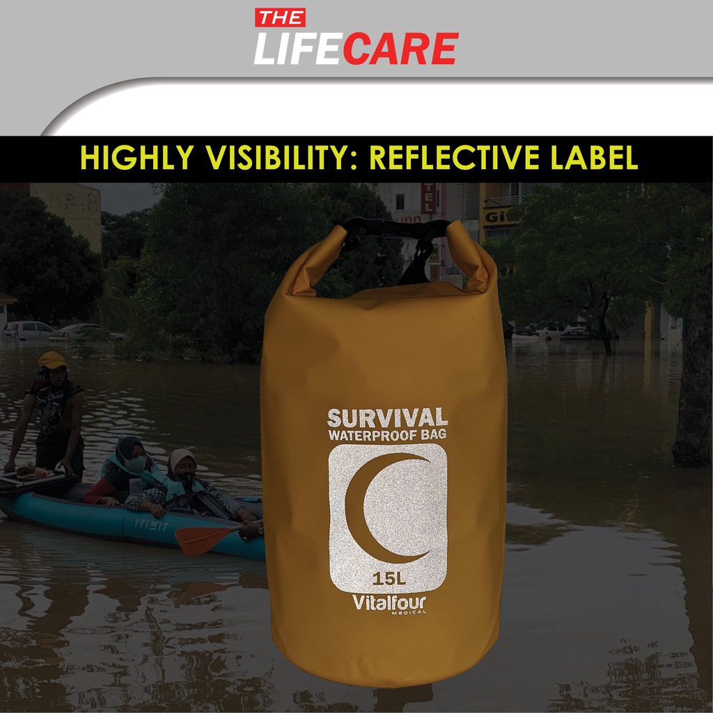 Vitalfour High Quality Waterproof Survival Bag 15L For Disaster Preparedness Beg Kecemasan Bencana Banjir
