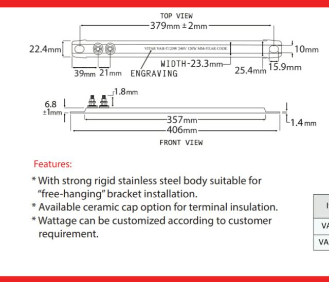 Vitar Anti Condensation Heater VAH-T80W 240V 80W