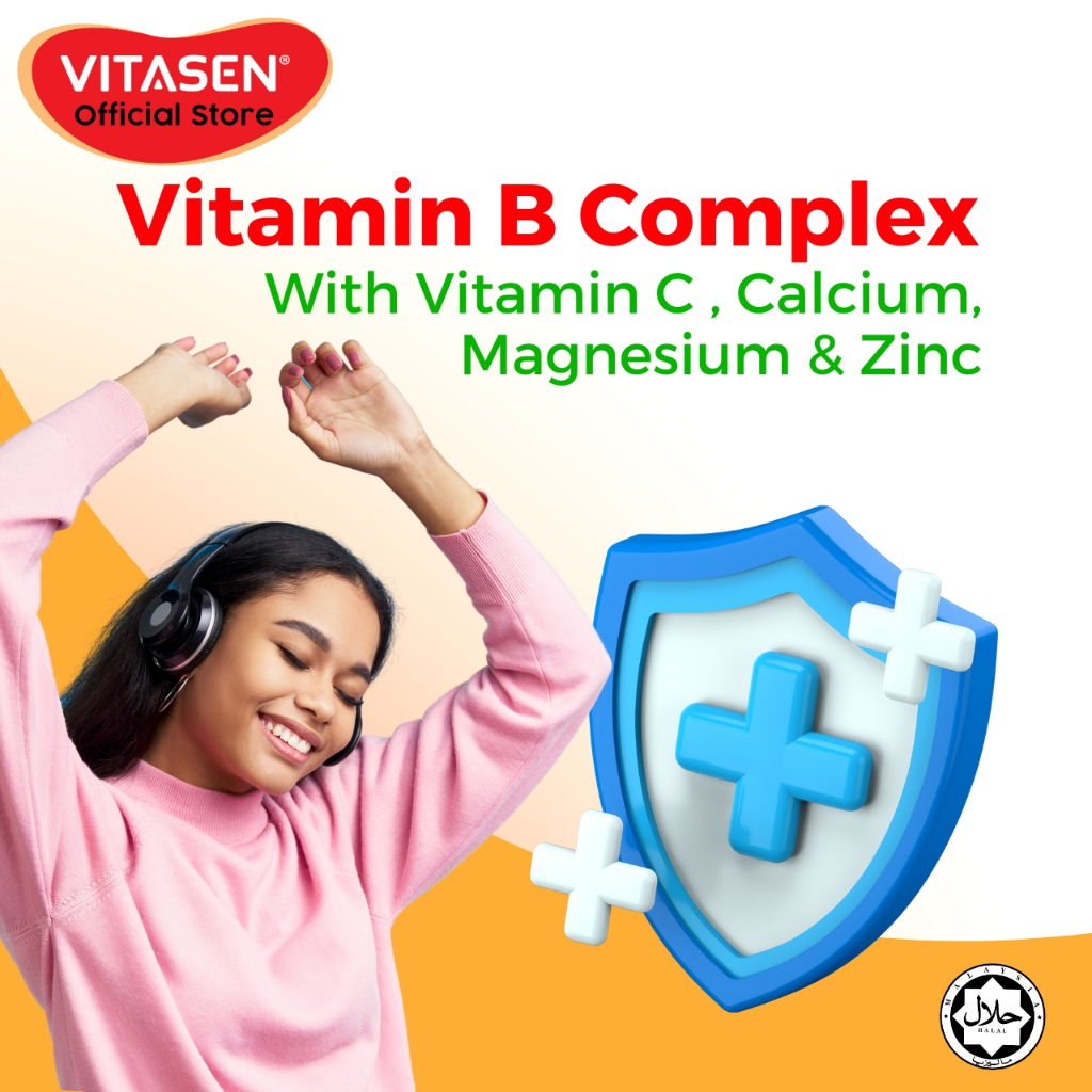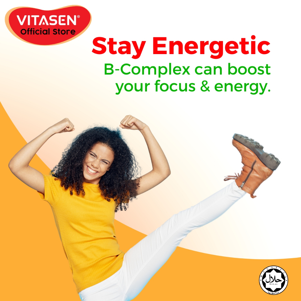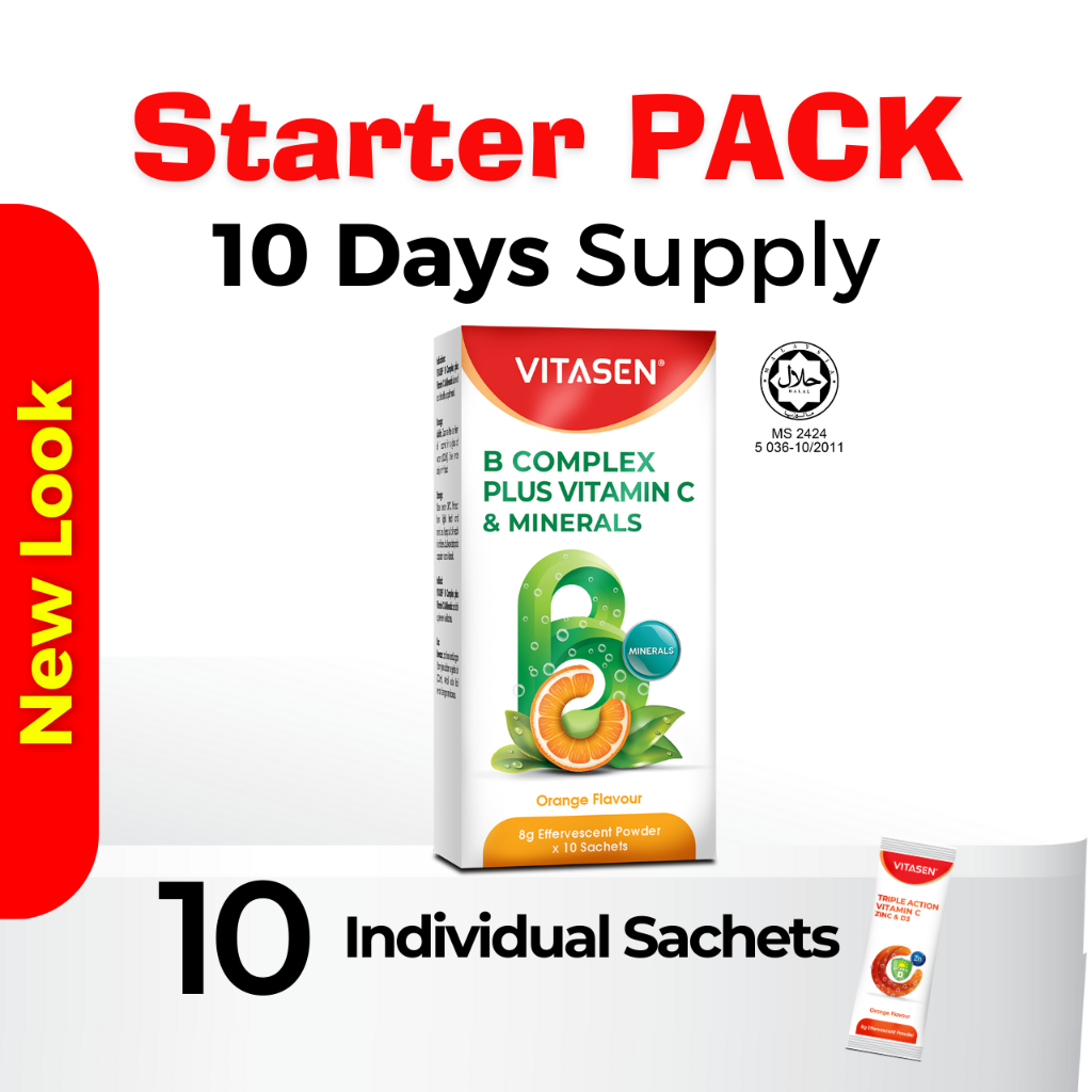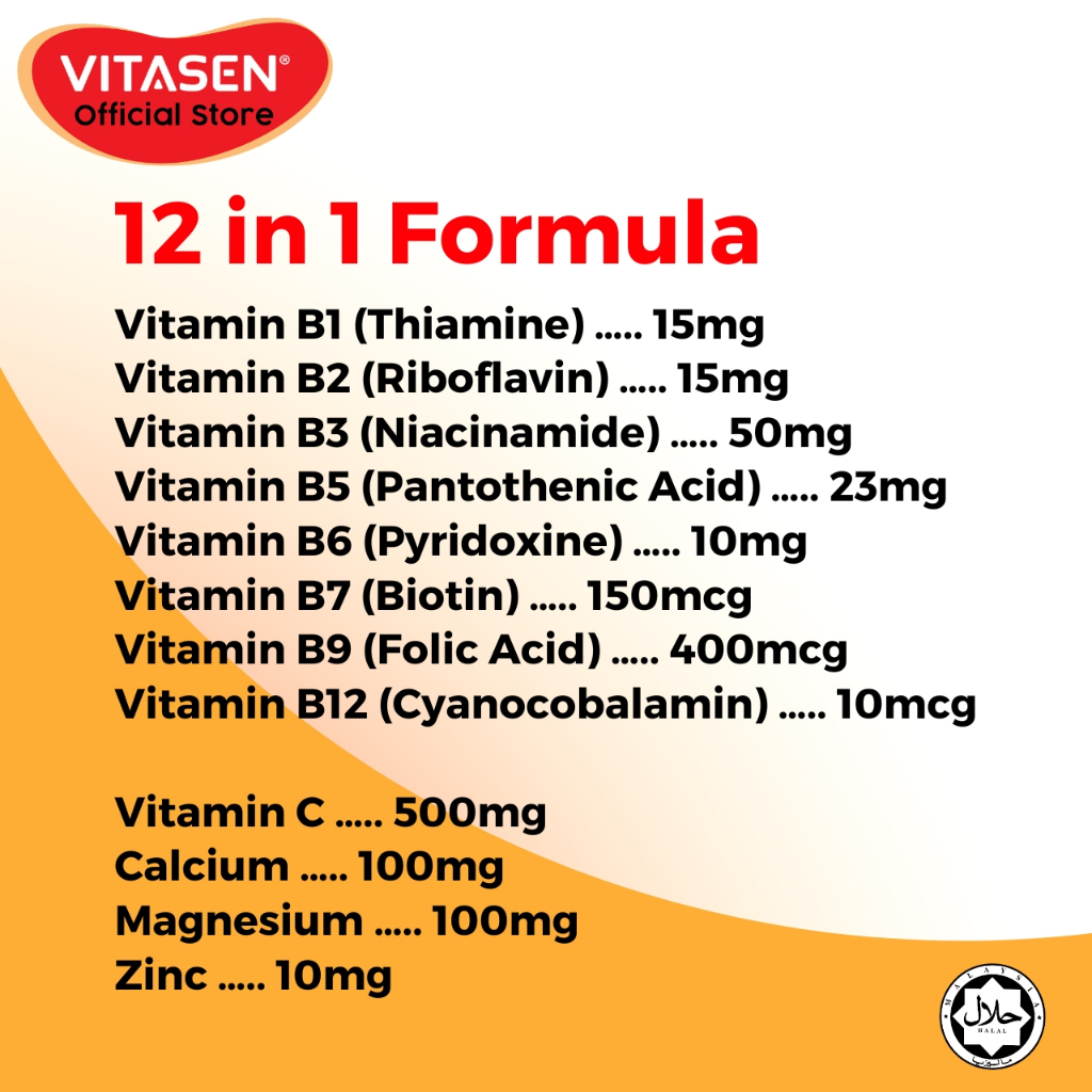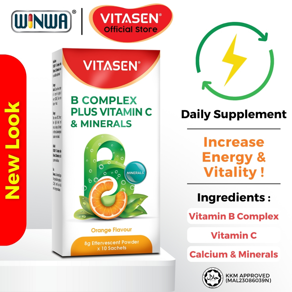 Vitasen B Complex Plus Vitamin C & Minerals Effervescent Powder Sachet 10'S - Energy, B12, Vitamin C