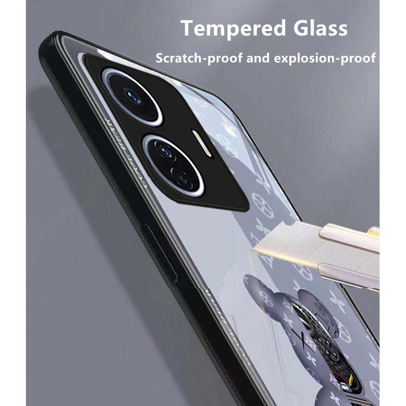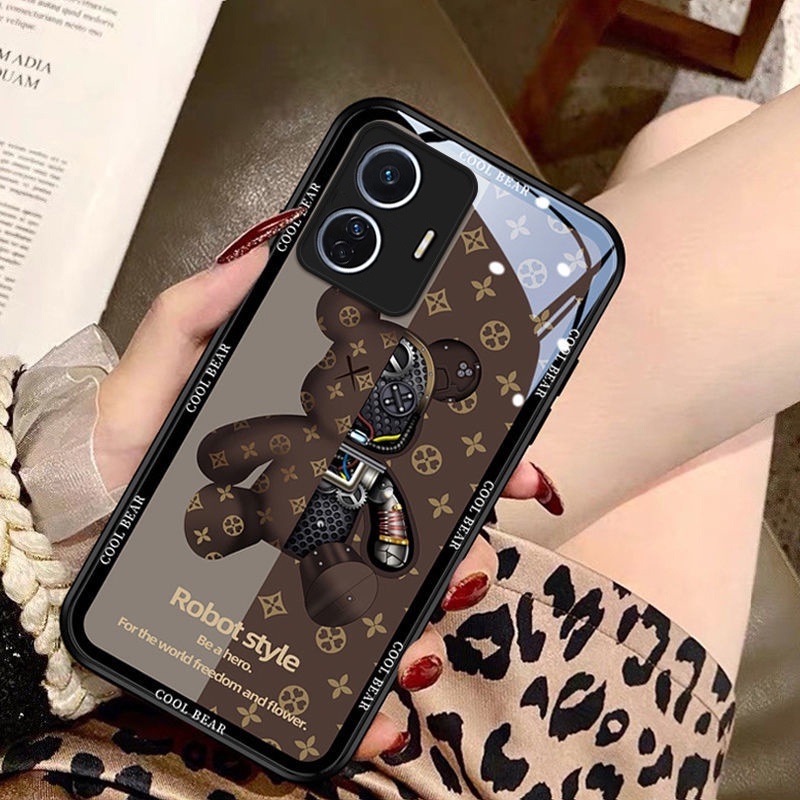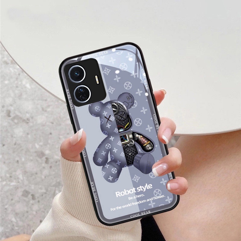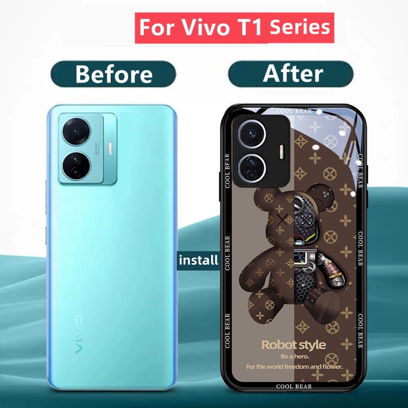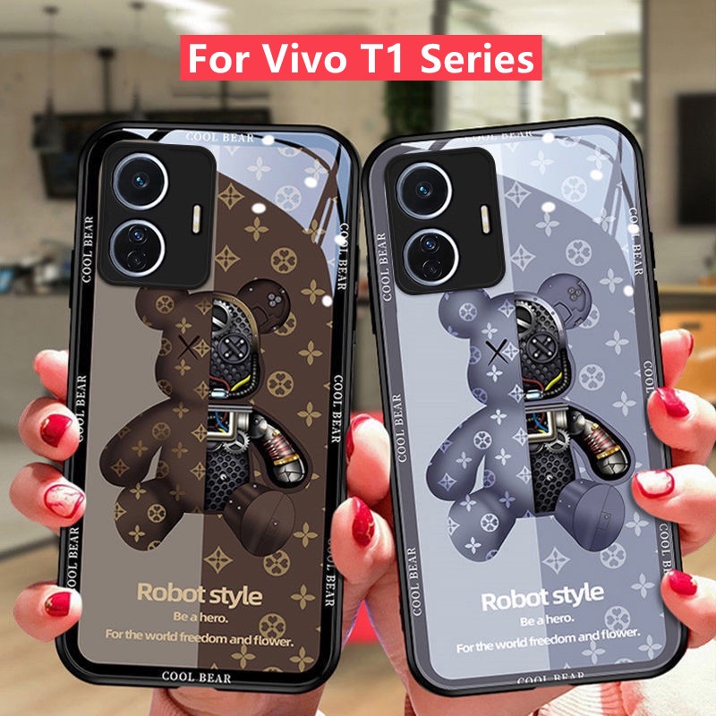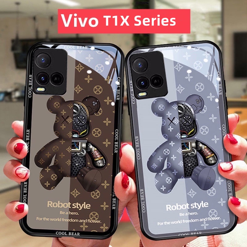 Vivo T1X Casing Vivo T1 5G Casing Luxury Liquid Glass Shockproof Case Bear And