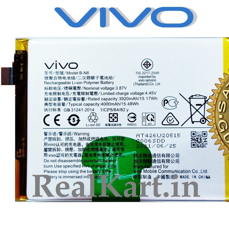 Vivo V20 4G 2021 V21e V2061 V20Pro 5G V2018 V2025 V2040 B-N8 4000mAh Battery Q6 Bateri 8 2025 2040 2061 20 Pro BN8 V2040