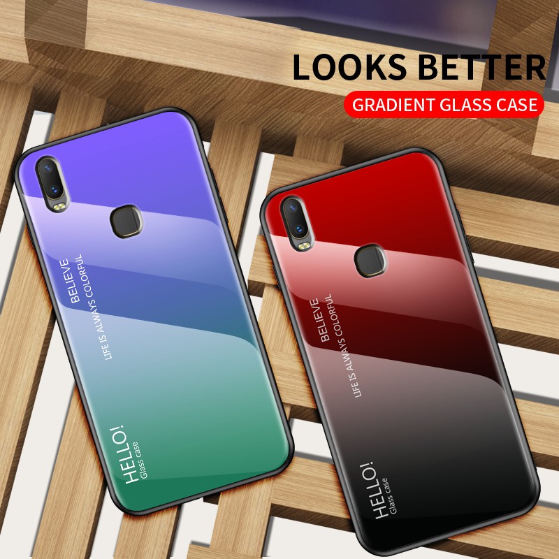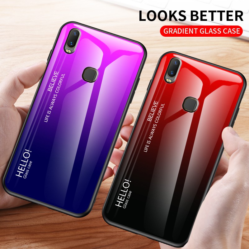 Vivo Y11 Y12 Y15 Y17 VIVOY11 Case Glossy Gradient Tempered Glass Soft Frame Phone Case Cover Vivo Y11 VivoY112019 Casing