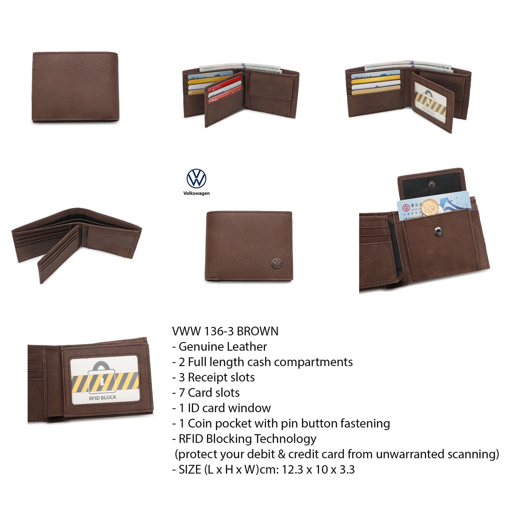 [Clearance] Volkswagen Genuine Leather RFID Short Wallet - Brown VWW 136