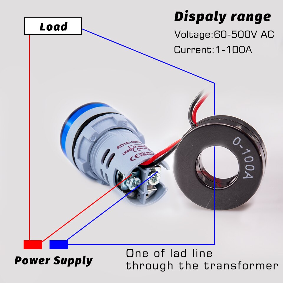 Voltmeter Ammeter 22mm AC 50-500V 1-100A Amp Volt Voltage Tester Meter LED Indicator Lamp Light