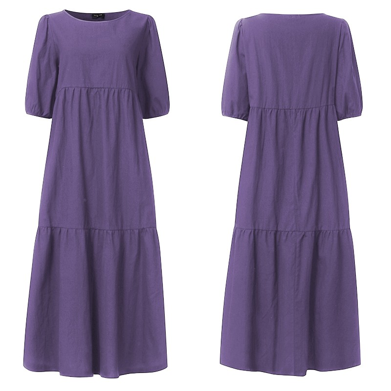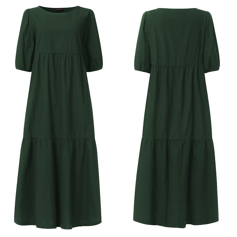 Vonda Womens Baggy Short Sleeve Sexy Retro Midi Dress