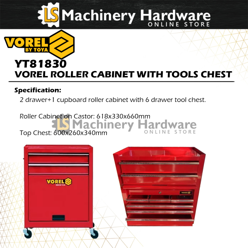 Vorel 2 drawer+1 cupboard roller cabinet with 6 drawer tool chest YT81830 - Brand From Poland - Yato Group