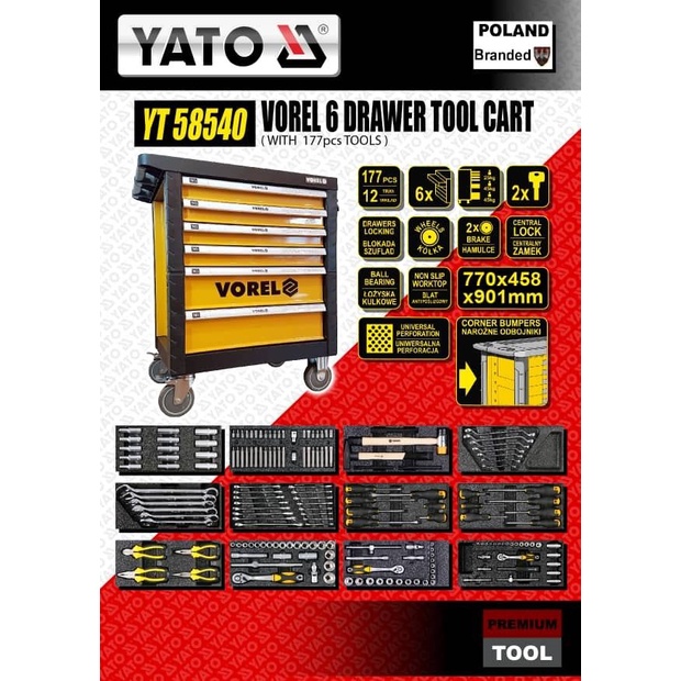Vorel YT-58540(Tools) 6 Drawer Tool Cart With Tools 177pcs ID33192 ID33667