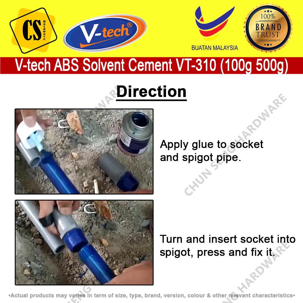 Vtech ABS Solvent Cement Glue for Bonding Coupling ABS Pipe ABS Fittings VT-310 Gum Paip Air