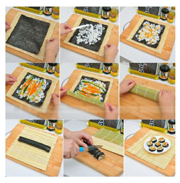 W3b4 Sushi Bamboo Mat Onigiri Rice Roller Chicken Roll Hand Maker Kitchen Japanese Sushi Tools Ready Stock 寿司滚筒垫