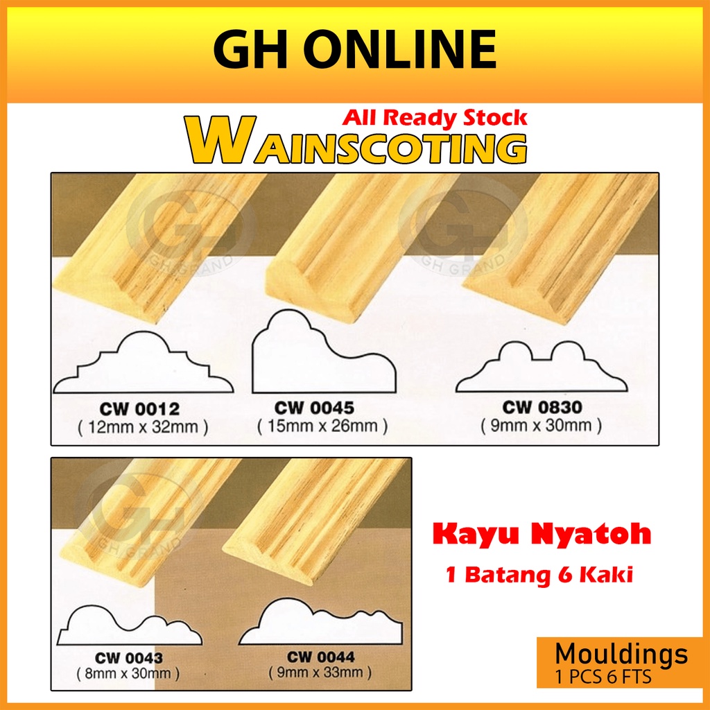 WAINSCOTING WOOD RAIL MOULDINGS WAINSCOTING DECORATION BINGAI KAYU SKIRTING KAYU NYATOH SOILD WOOD