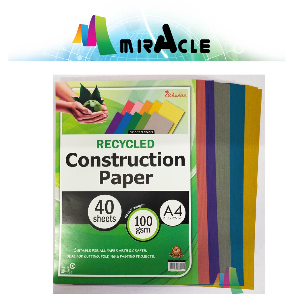 WALES A4 assorted colors recycled construction paper 100gsm