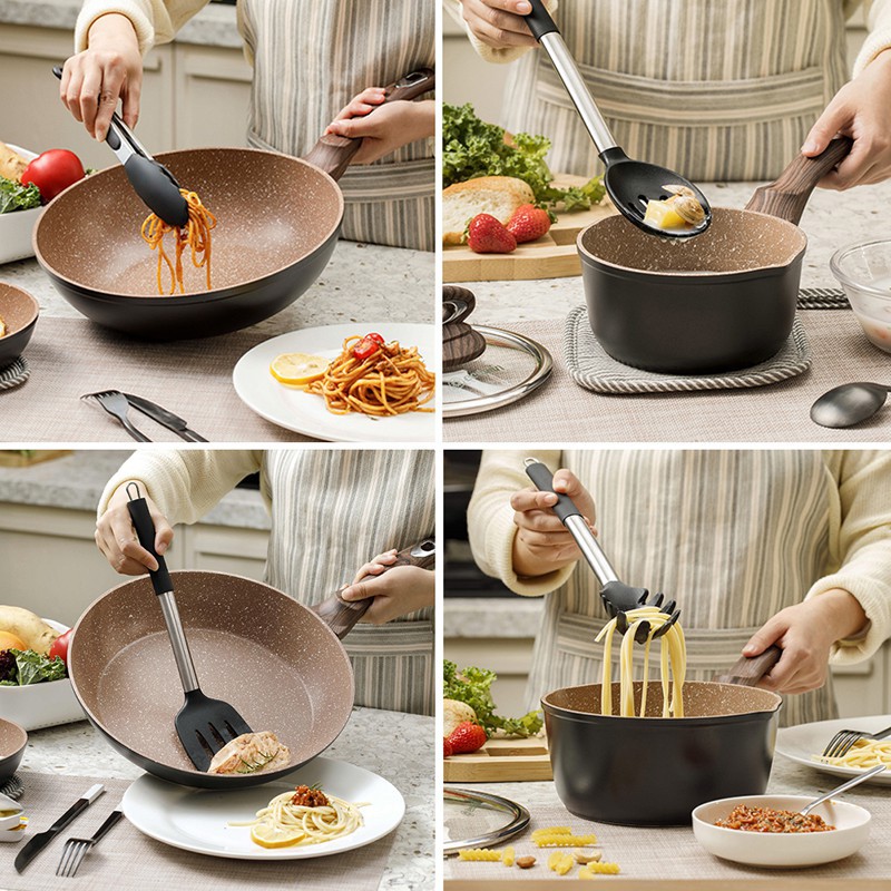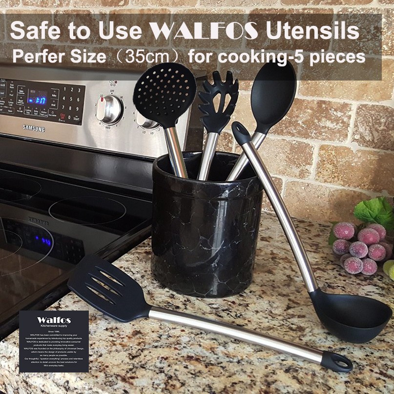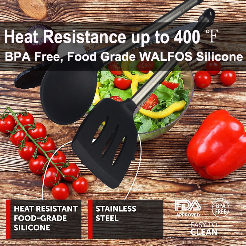 WALFOS Silicone Cooking Utensil Turner Spatula Set Stainless Steel Heat Resistant